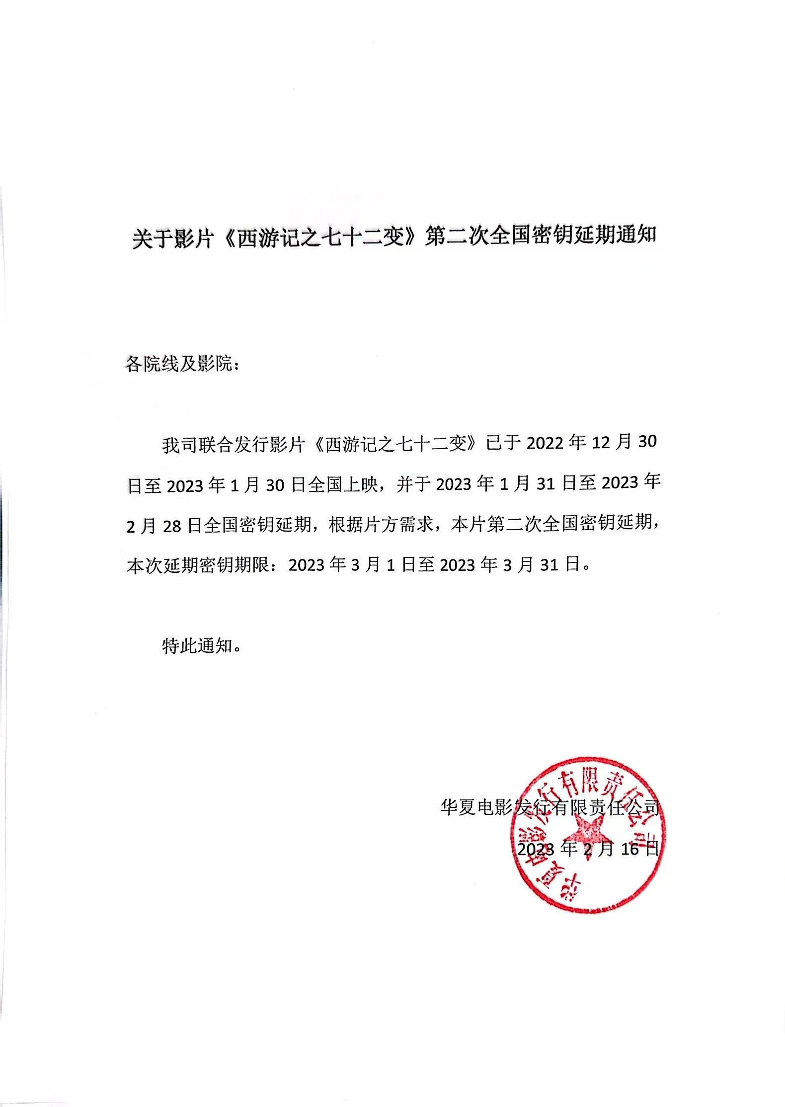 《西游记之七十二变》发行通知