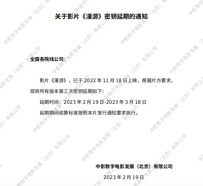 《漫游》密钥延期的通知