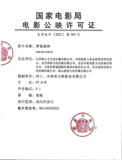 联合出品:中国残疾人事业新闻宣传促进会、北京笛湃文化传媒有限公司、北京华夏尚影文化传媒有限公司、吉林省影视剧制作集团有限责任公司、北京诚译音影文化传媒有限公司、象山夏语文化传媒有限公司