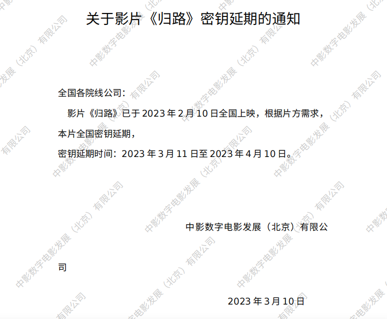 《归路》二次密钥延期的通知