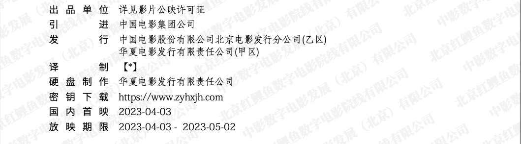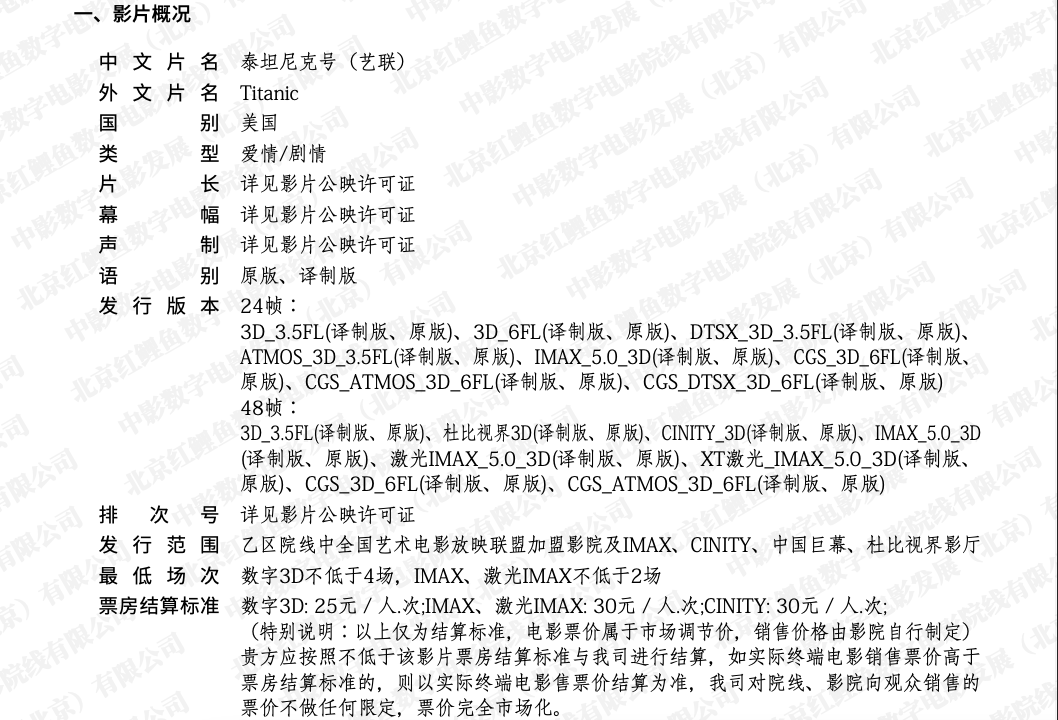 《泰坦尼克号》目前没有许可证,排次号已经上挂专资了。使用放映版本对应的正确排次号。