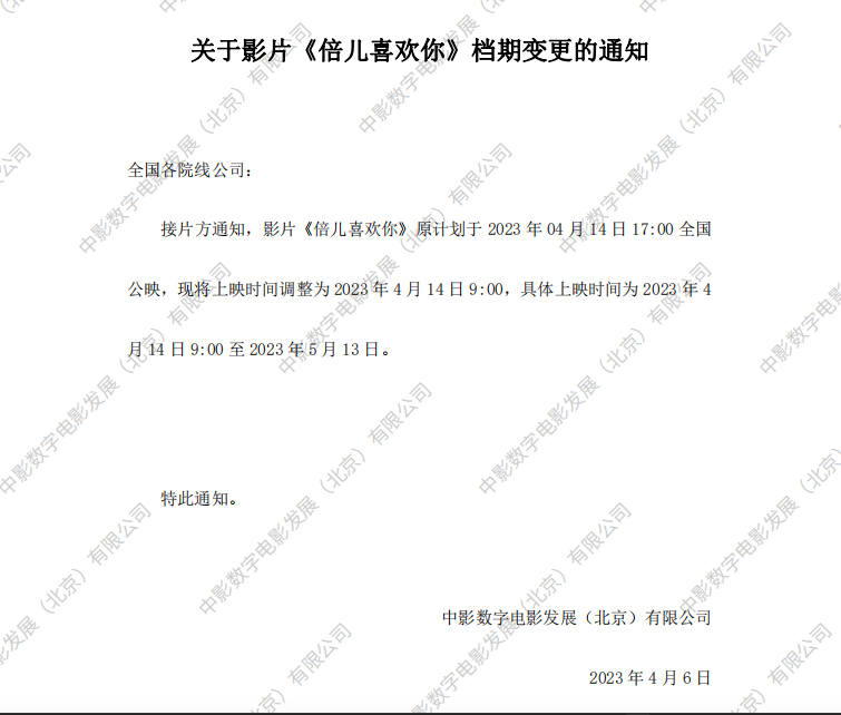 《倍儿喜欢你》发行通知