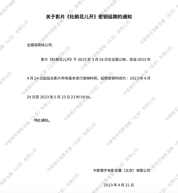 发行通知 » 《杜鹃花儿开》密钥延期的通知
