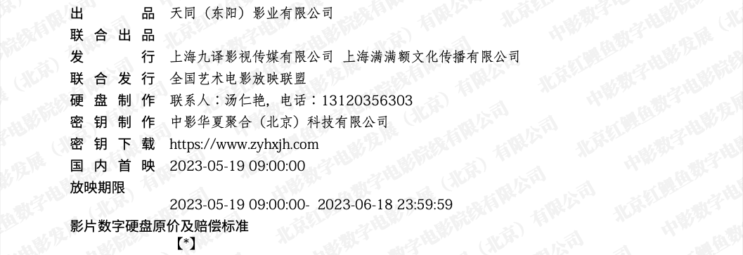 关于影片《水边维纳斯》第九次密钥延期的通知