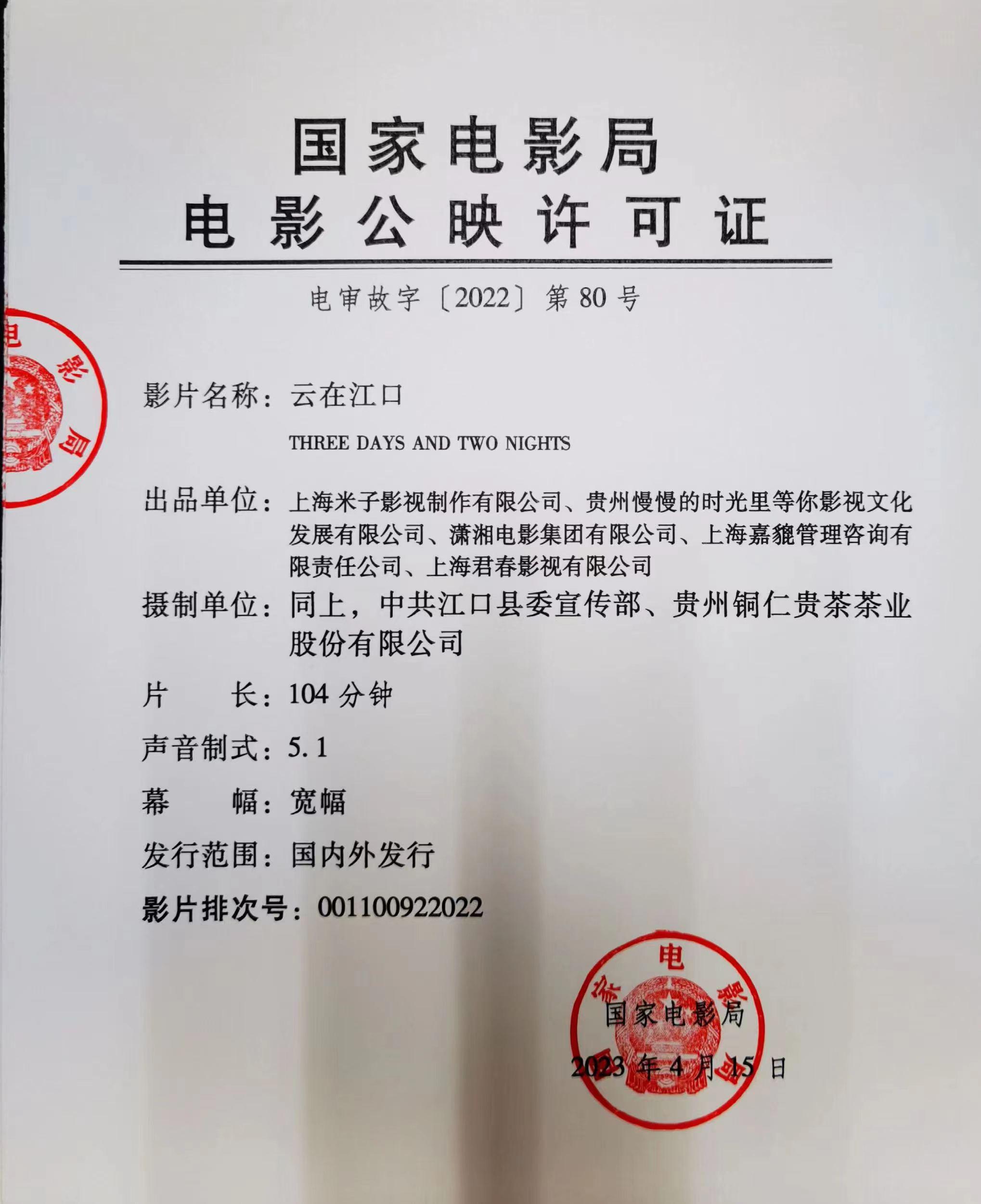 《云在江口》发行通知