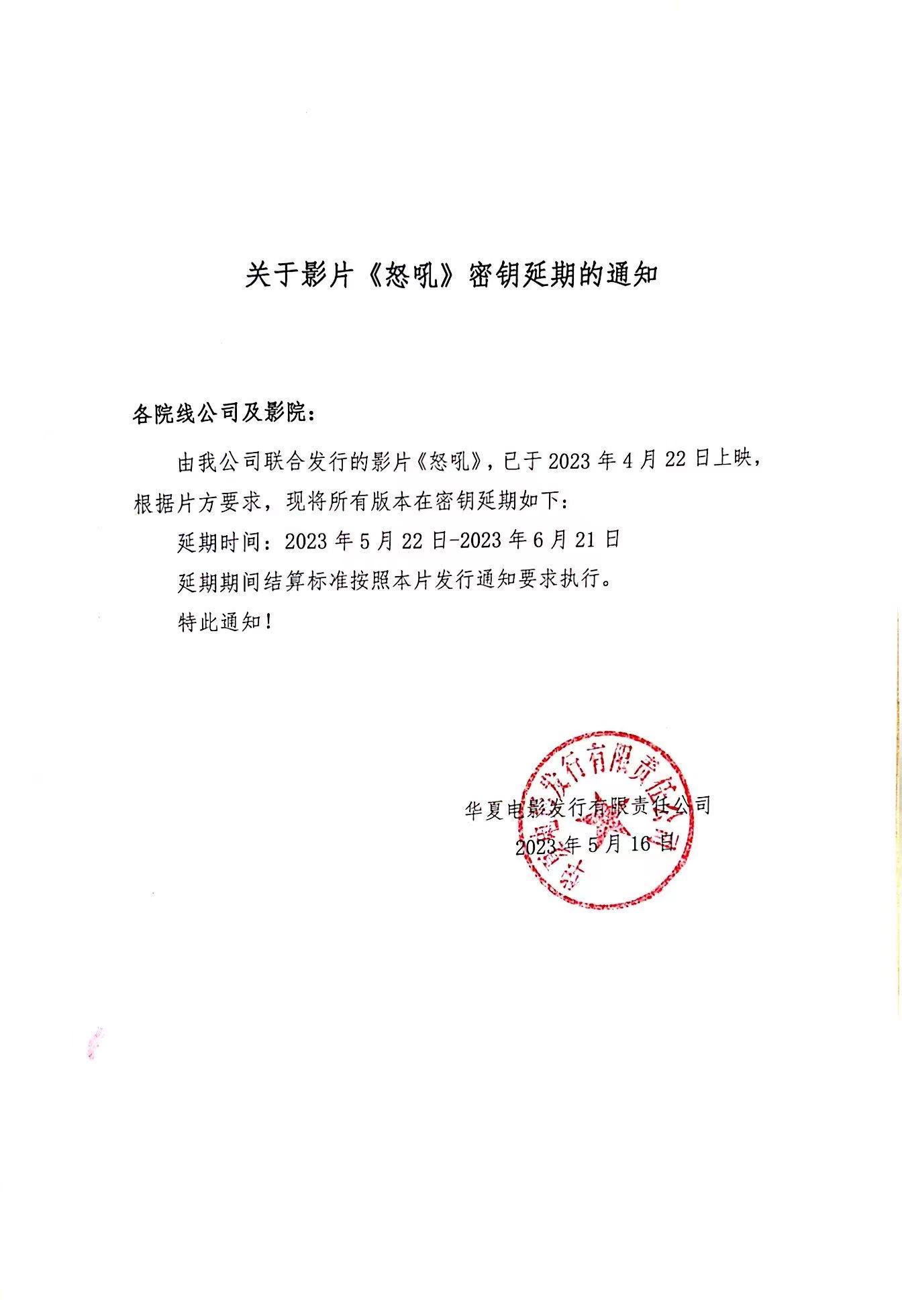 《怒吼》密钥延期的通知