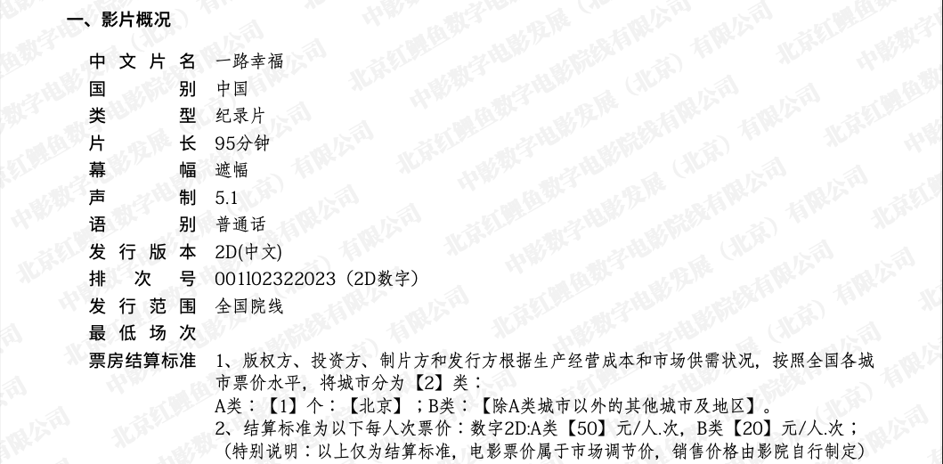 《一路幸福》调整票房结算标准的通知
