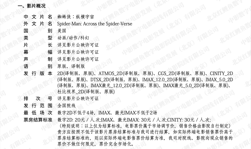 《蜘蛛侠:纵横宇宙》发行通知(中影综合业务服务平台)