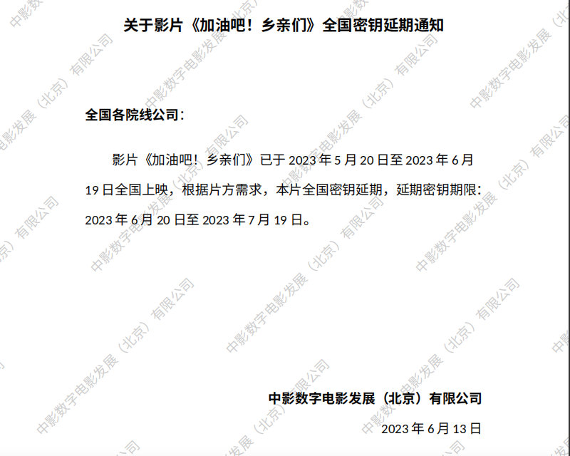 发行通知 » 《加油吧!乡亲们》全国密钥延期的通知