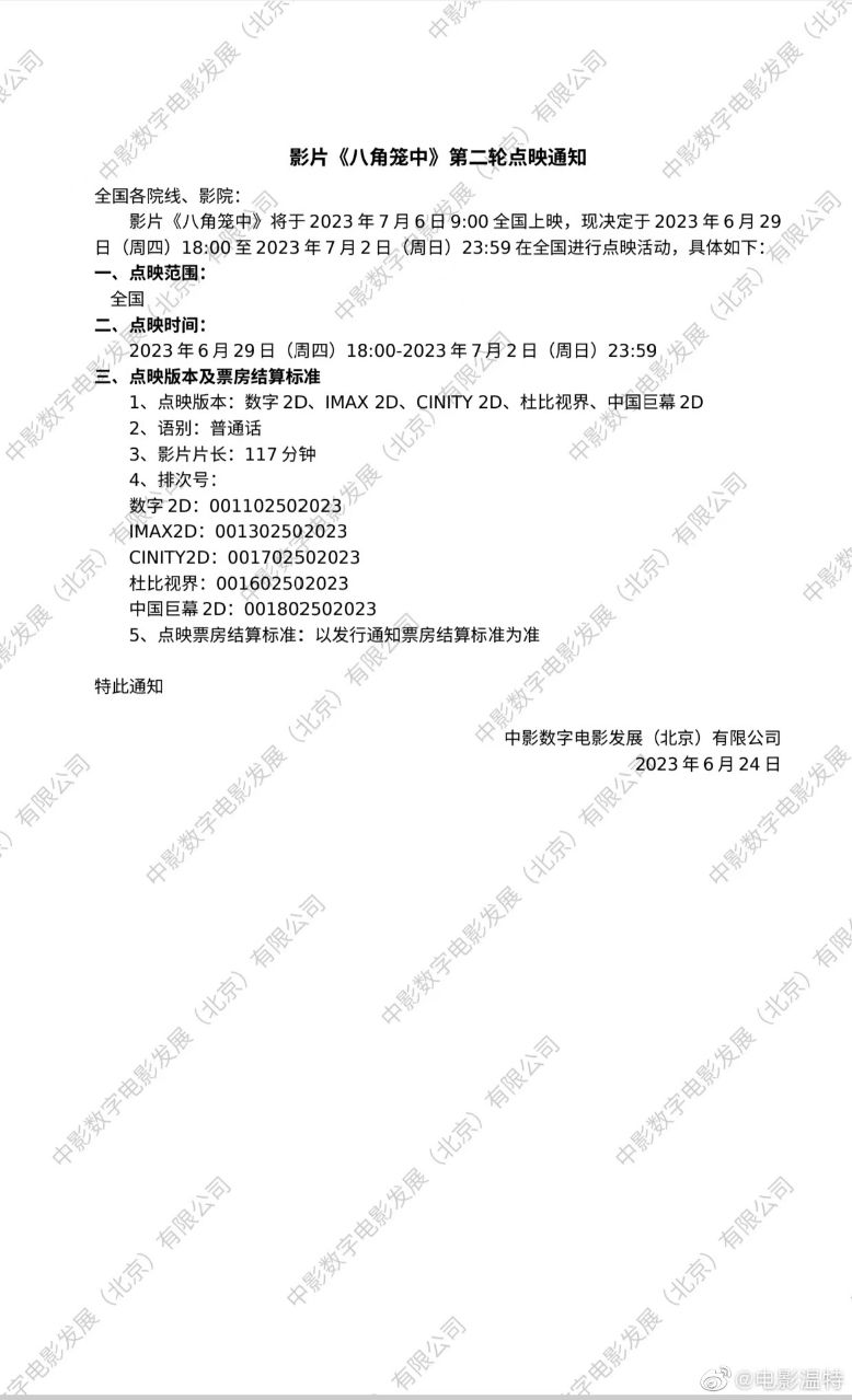 发行通知 » 影片《八角笼中》第二轮点映通知