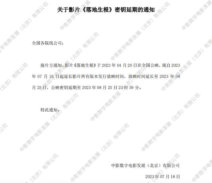 《落地生根》第十六次密钥延期的通知