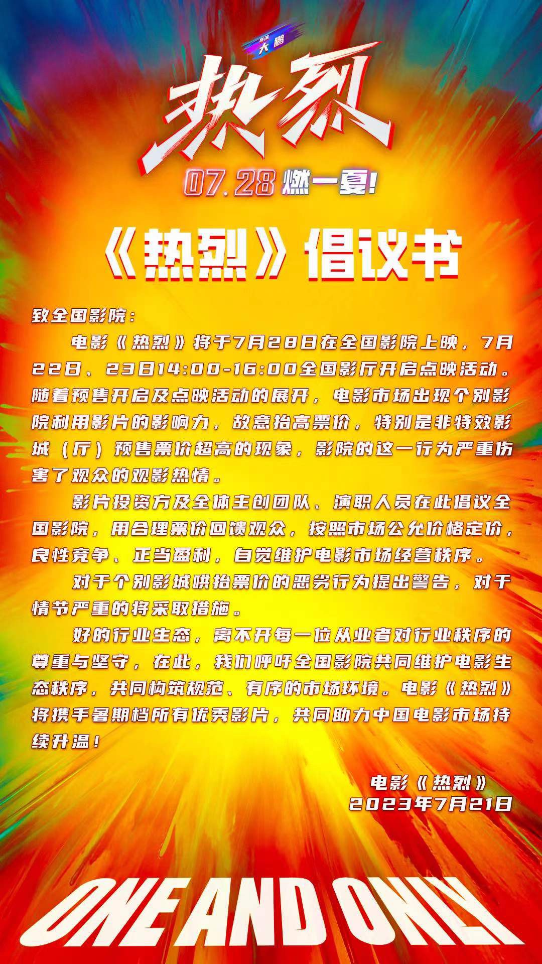 关于影片《热烈》第五次密钥延期的通知