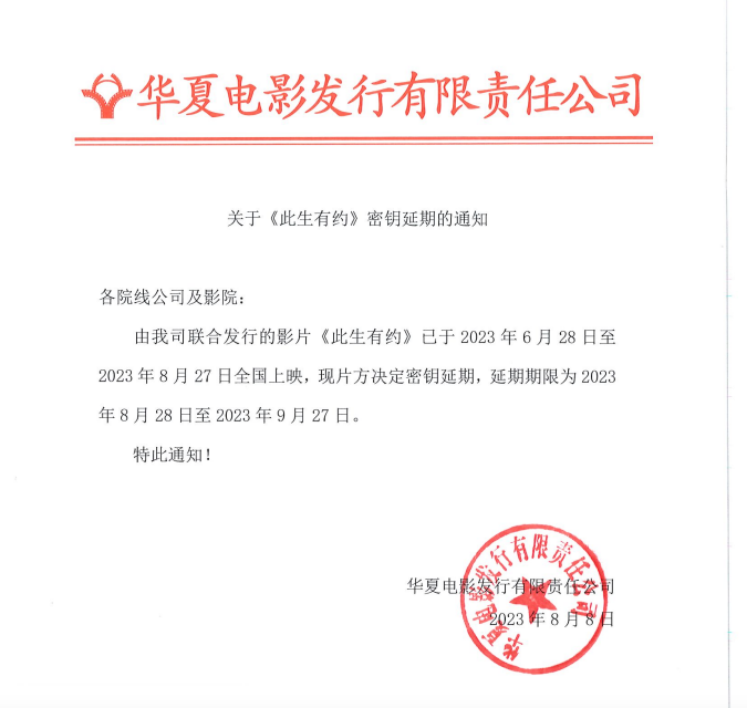 关于《此生有约》密钥延期的通知