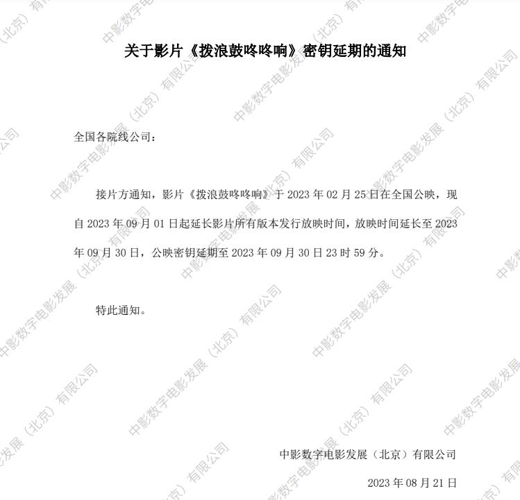 《拨浪鼓咚咚响》第三十二次密钥延期的通知