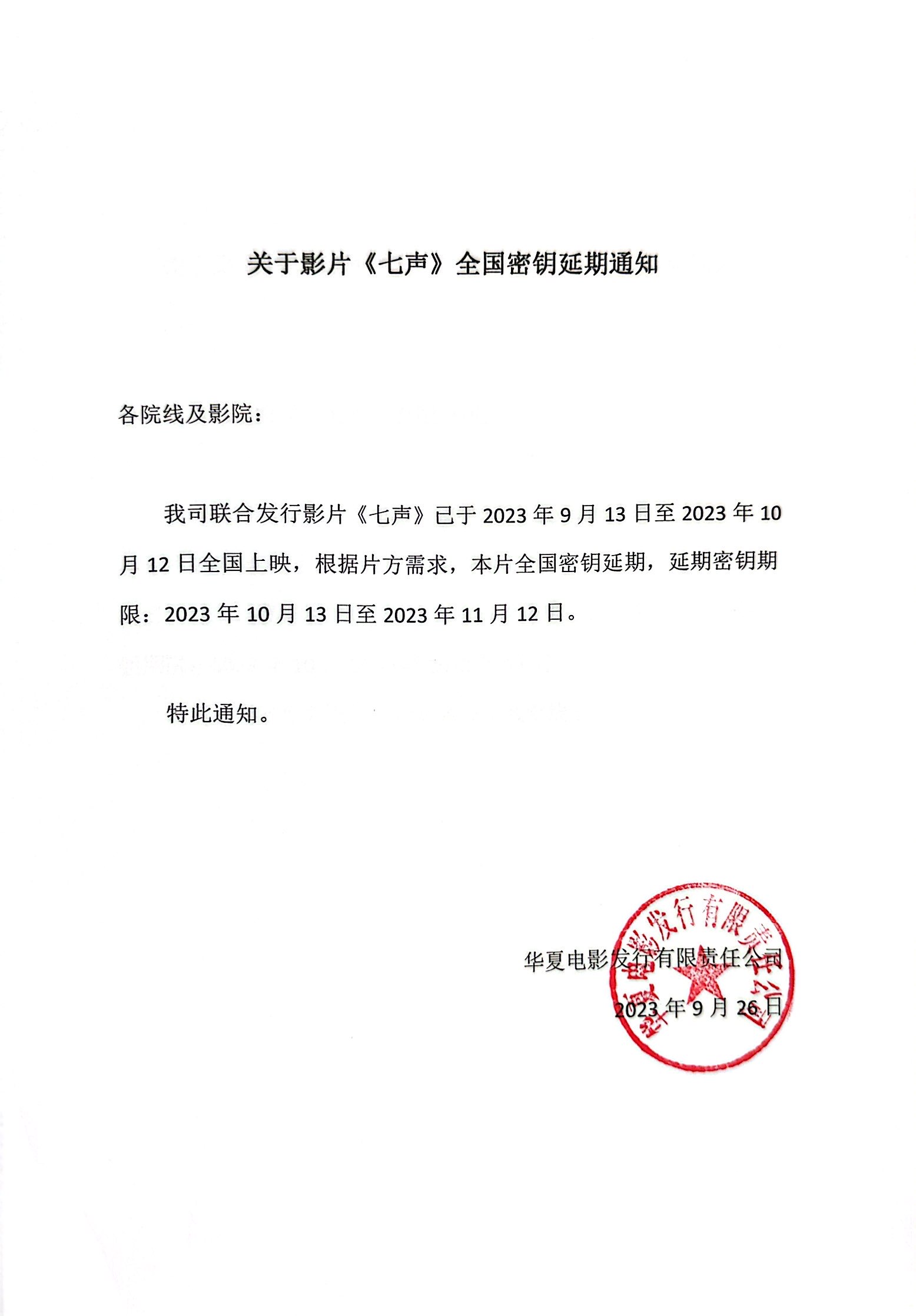 《七声》第十二次全国密钥延期的通知
