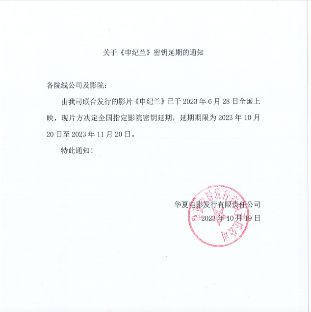 关于《申纪兰》密钥延期的通知