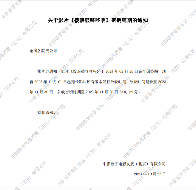 《拨浪鼓咚咚响》第三十二次密钥延期的通知