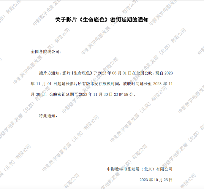 《生命底色》密钥延期的通知
