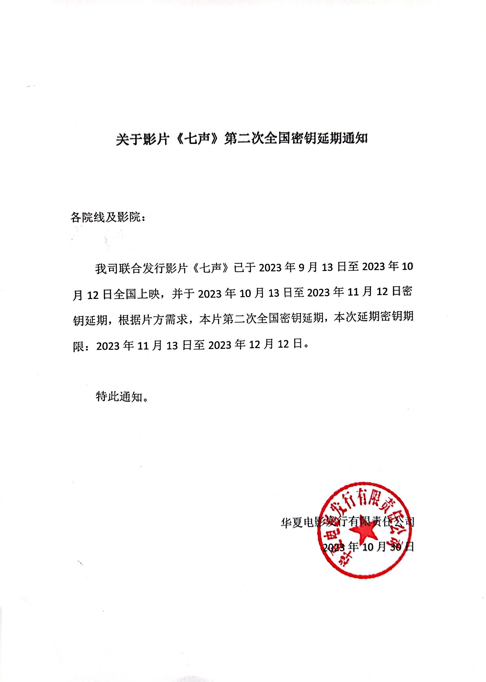 《七声》第十二次全国密钥延期的通知