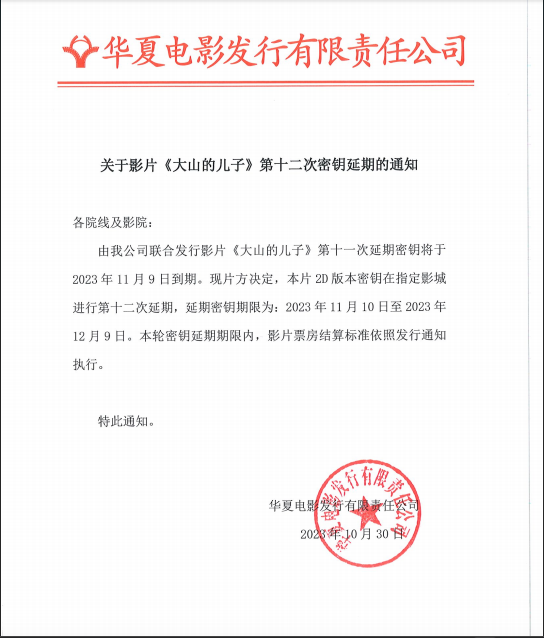 《大山的儿子》第十三次密钥延期的通知