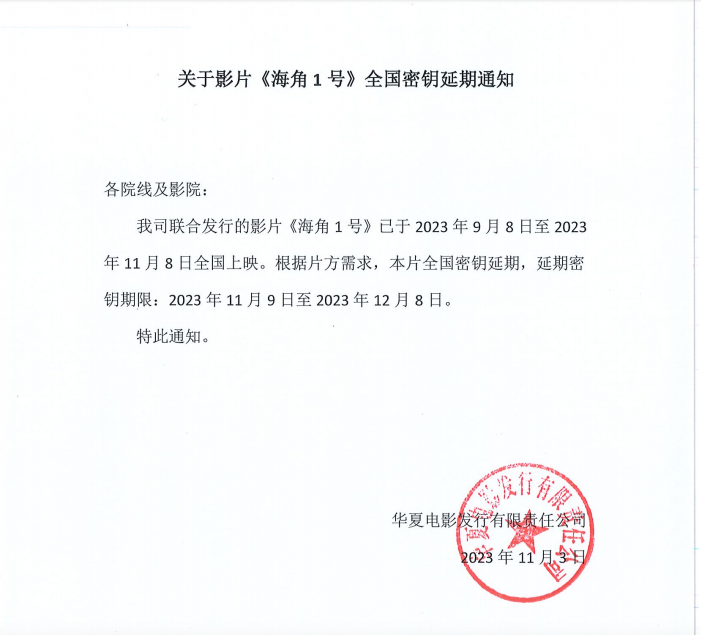 《海角1号》全国密钥延期的通知