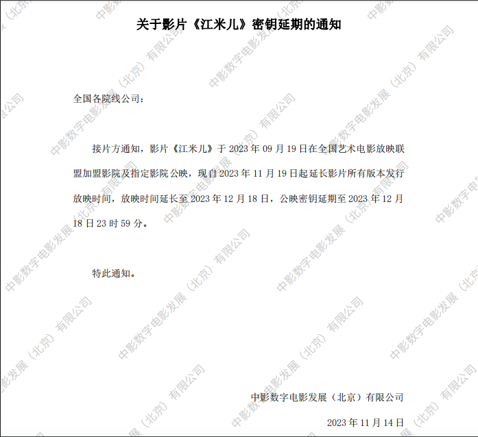 《江米儿》密钥延期的通知