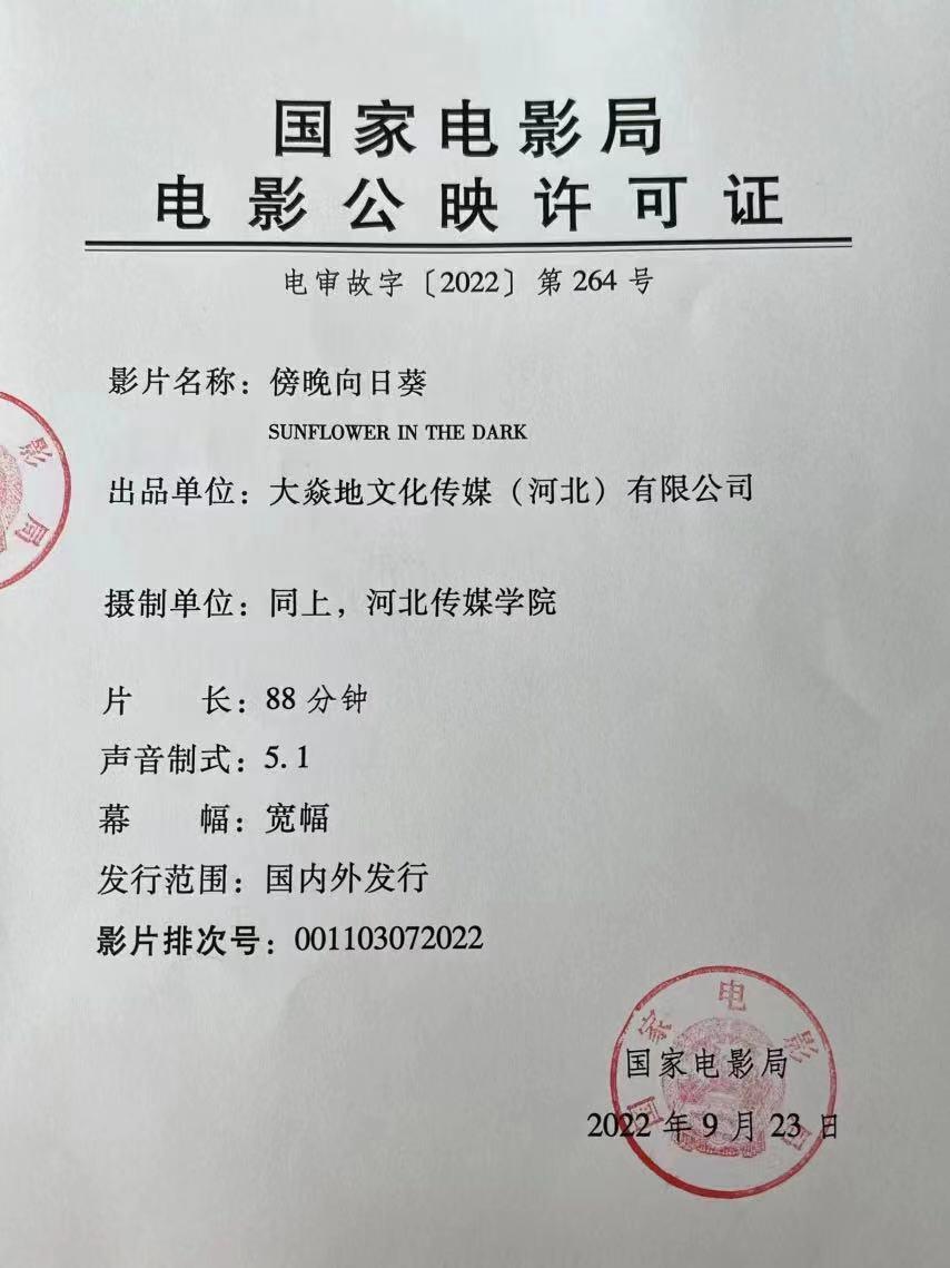 《傍晚向日葵》数字版影片发行通知
