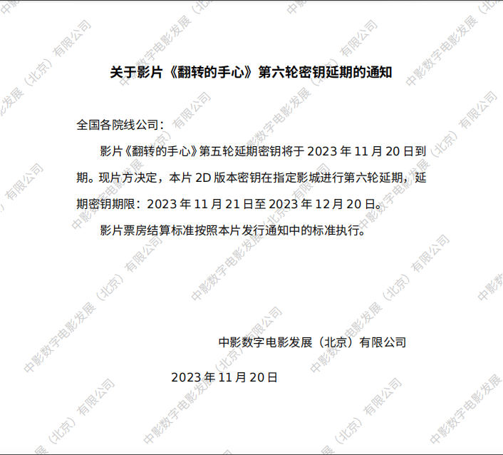 《翻转的手心》第二轮密钥延期的通知