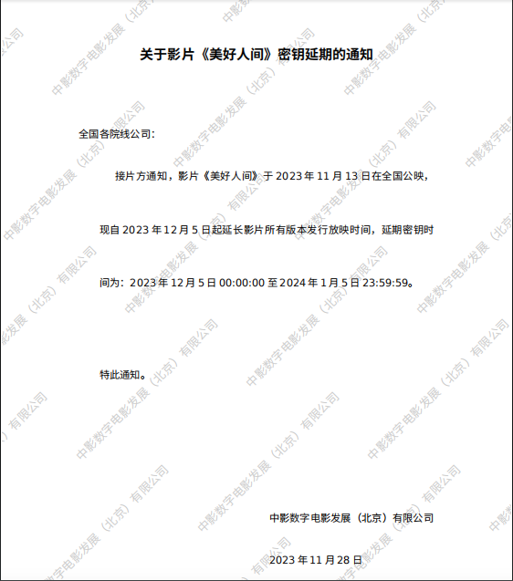 《美好人间》密钥延期的通知