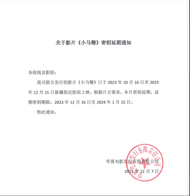 关于影片《小马鞭》密钥延期通知