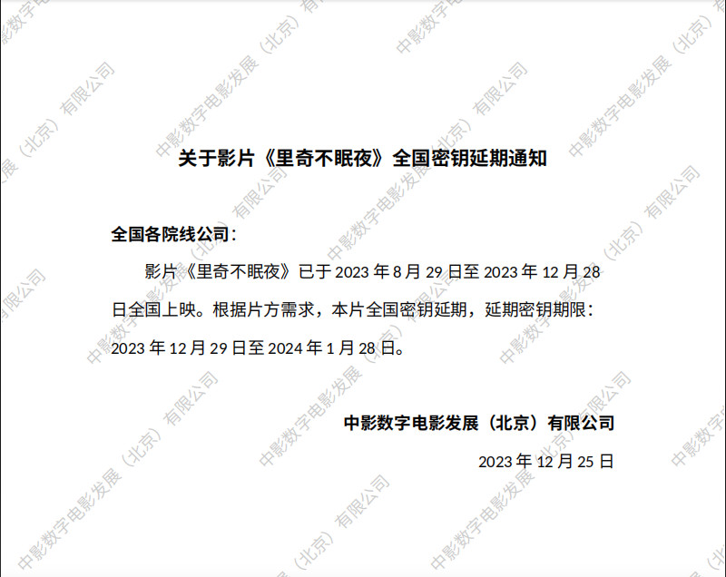 《里奇不眠夜》全国密钥延期的通知