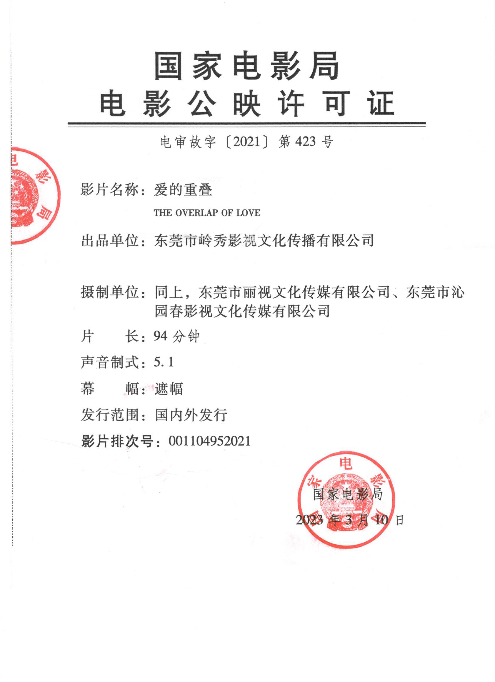 《爱的重叠》密钥延期的通知