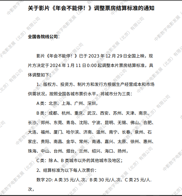 发行通知 » 《年会不能停!》调整票房结算标准的通知
