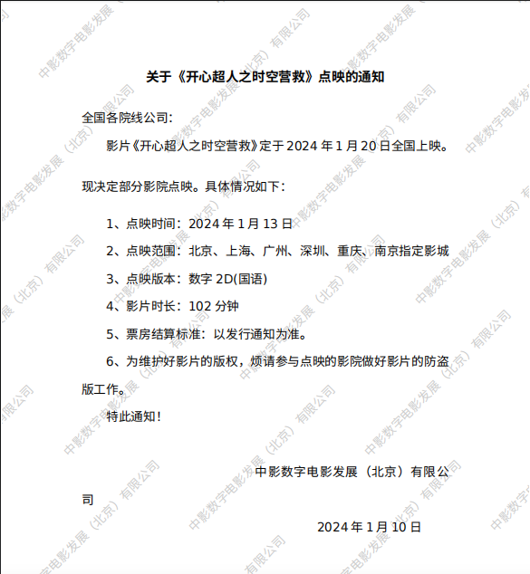 《开心超人之时空营救》发行通知