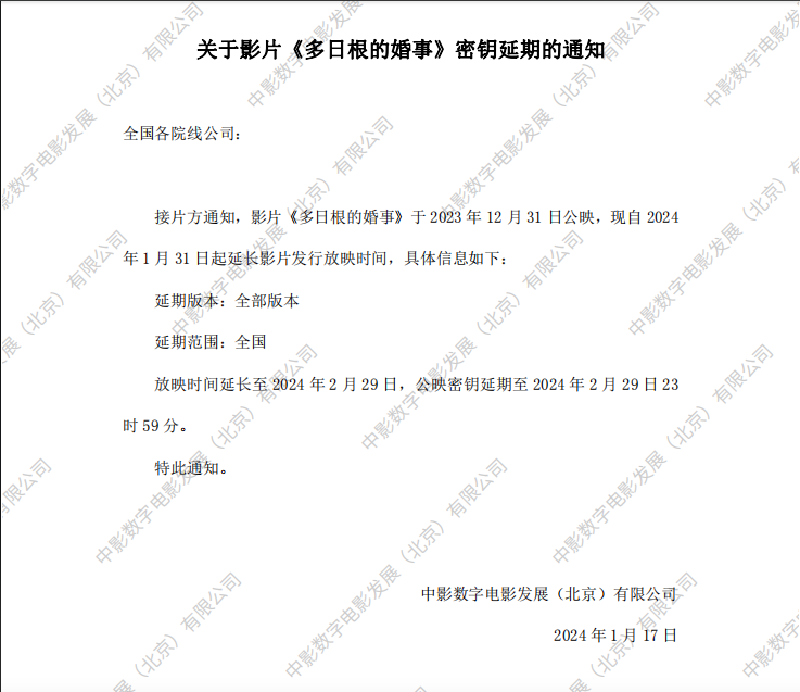《多日根的婚事》发行通知