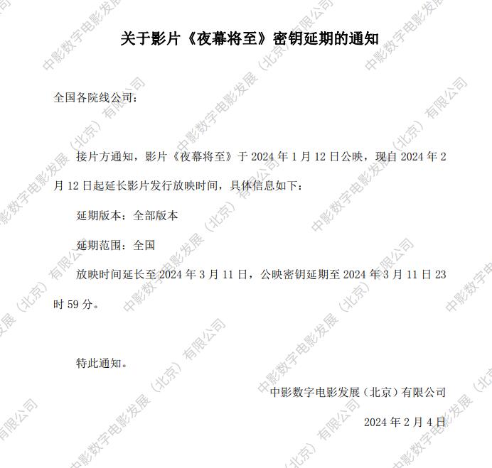 《夜幕将至》发行通知