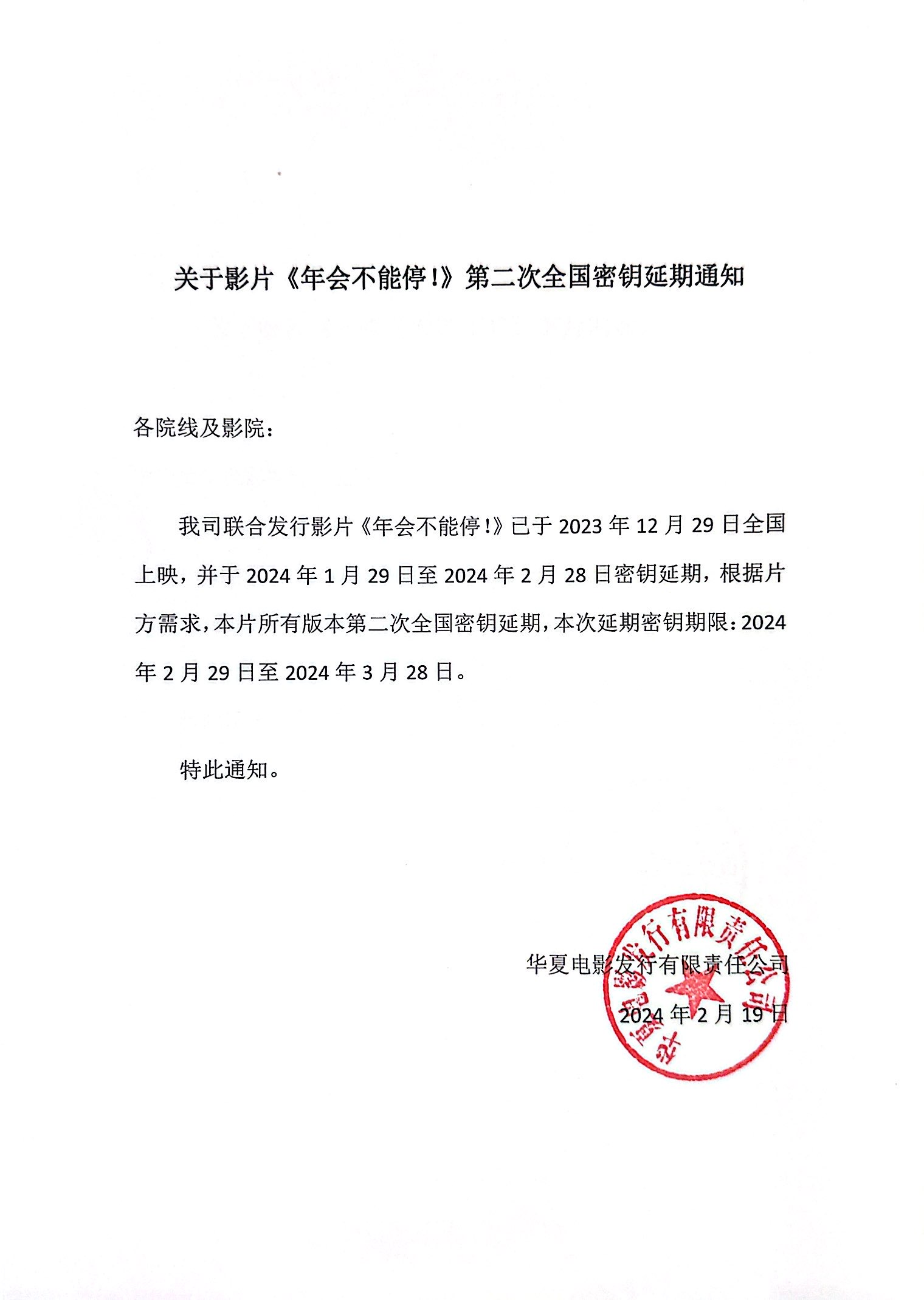 《年会不能停!》调整票房结算标准的通知