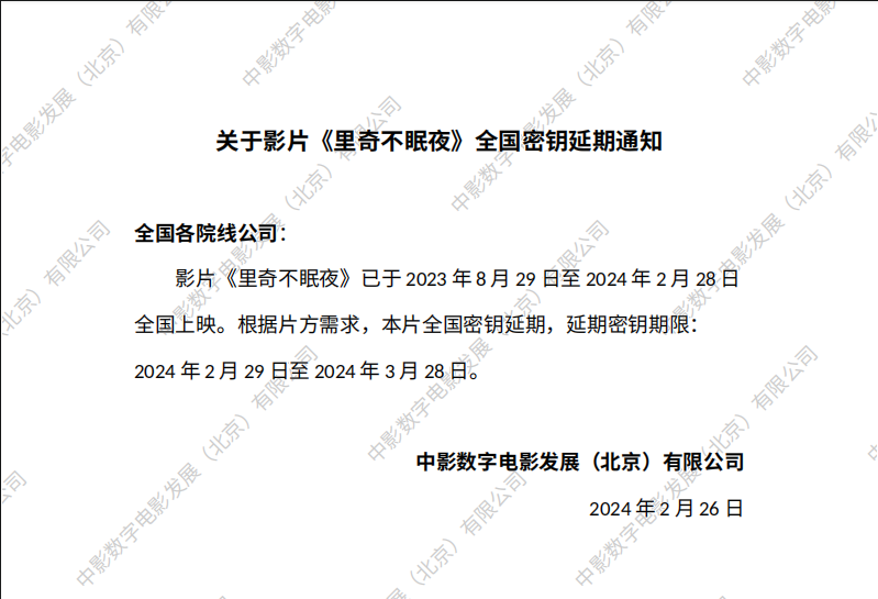 《里奇不眠夜》全国密钥延期的通知