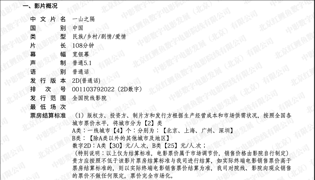 《一山之隔》发行范围变更的通知