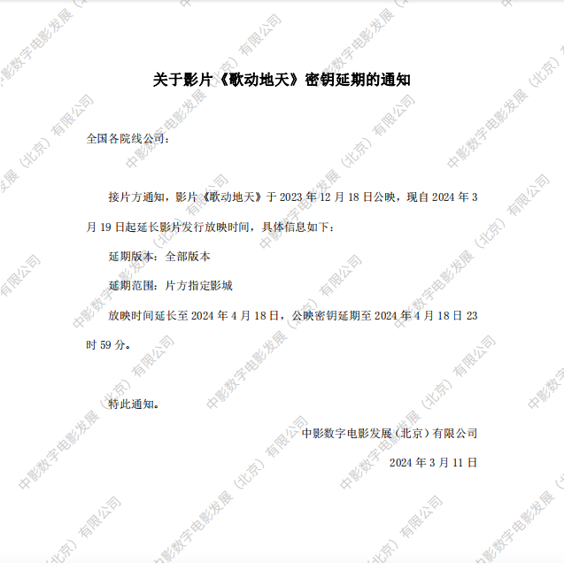 发行通知 » 《歌动天地》第三次密钥延期的通知