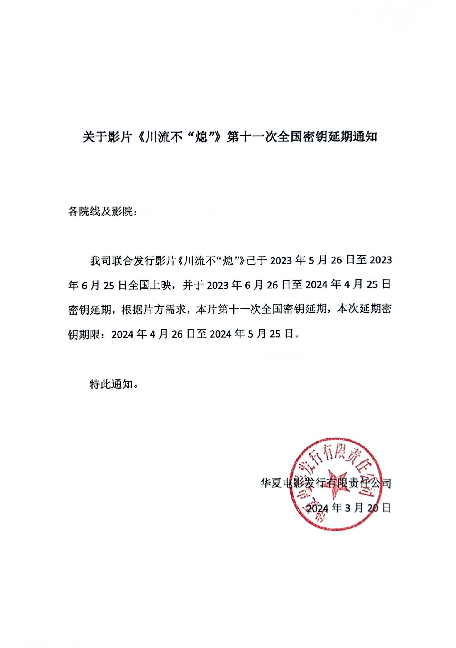 《川流不“熄”》第十次全国密钥延期的通知