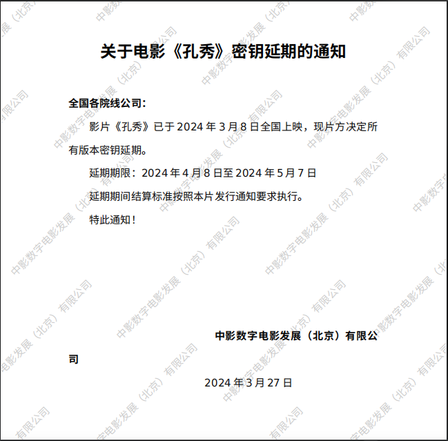 《孔秀》第二次密钥延期的通知