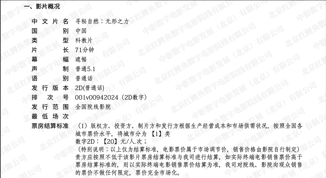 《寻秘自然:无形之力》调整票房结算标准的通知