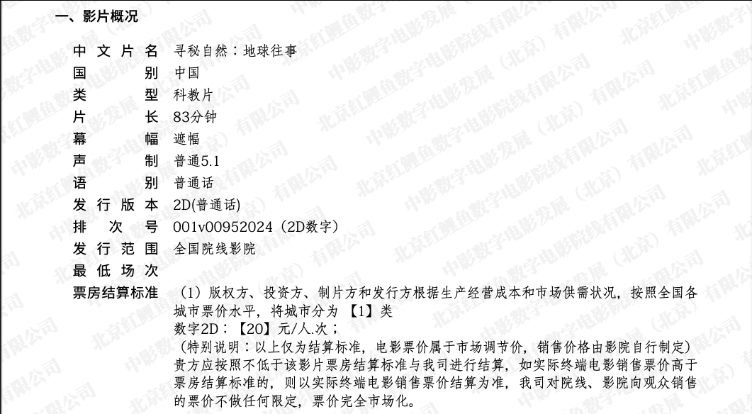 《寻秘自然:地球往事》调整票房结算标准的通知