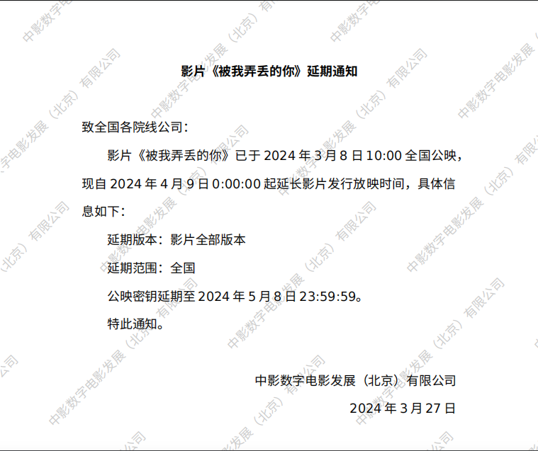 《被我弄丢的你》发行通知