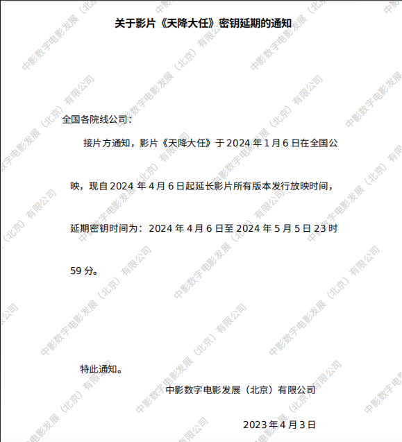 《天降大任》第十次密钥延期的通知