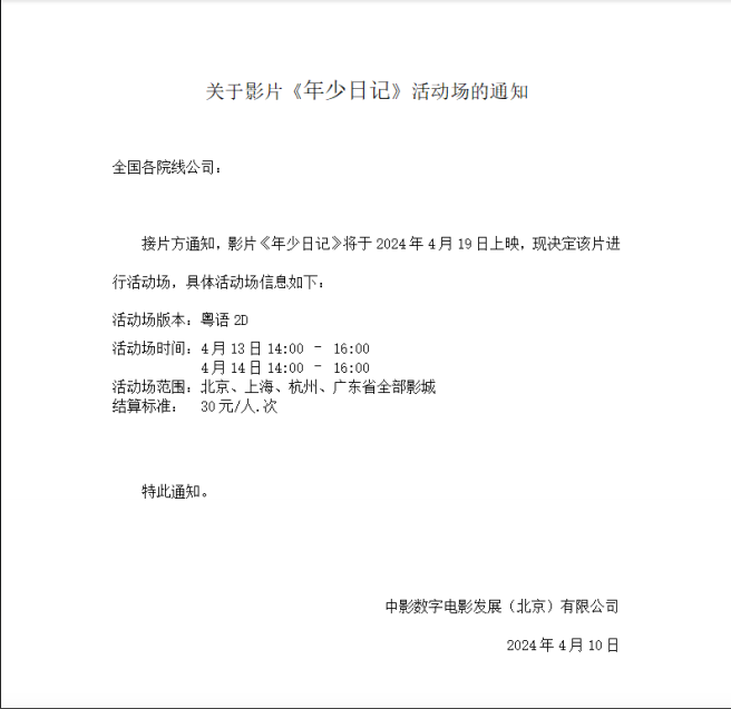 《年少日记》发行通知