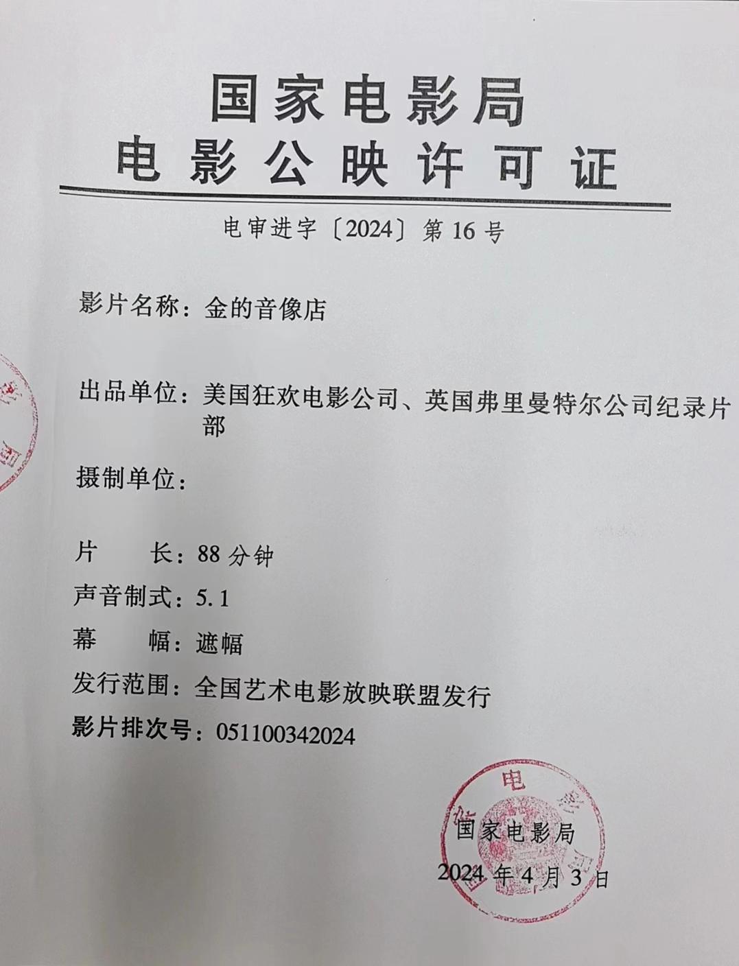 【延期】【艺联】《金的音像店》数字版影片发行通知