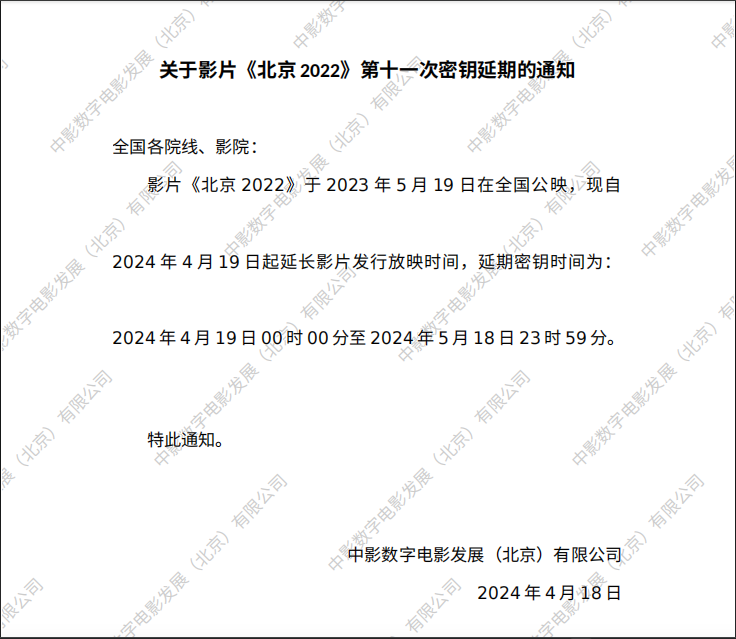 《北京2022》第九次密钥延期的通知