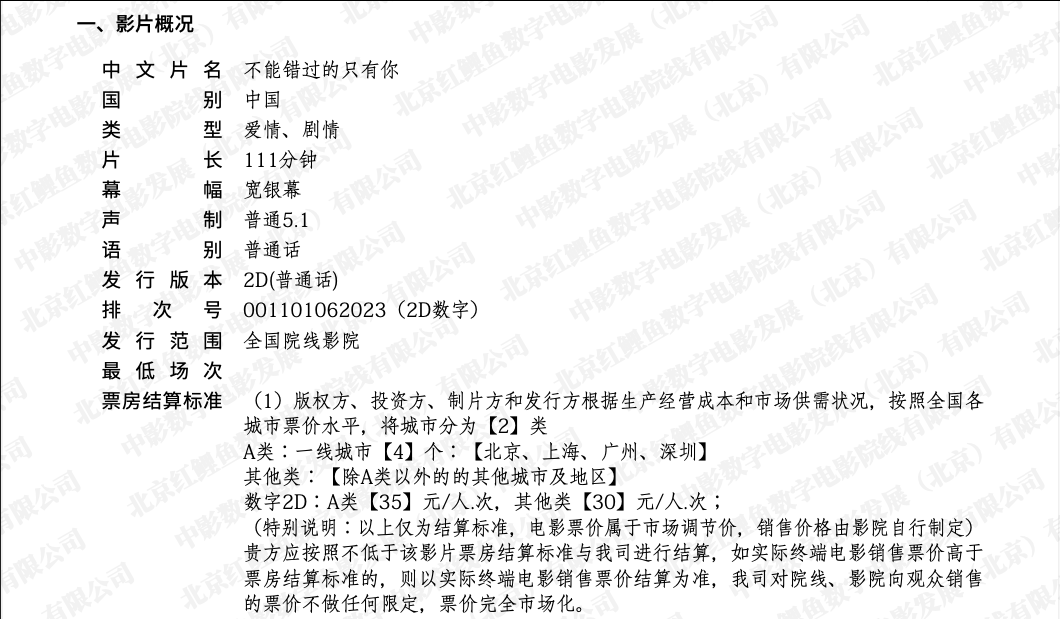 《不能错过的只有你》全国点映的通知